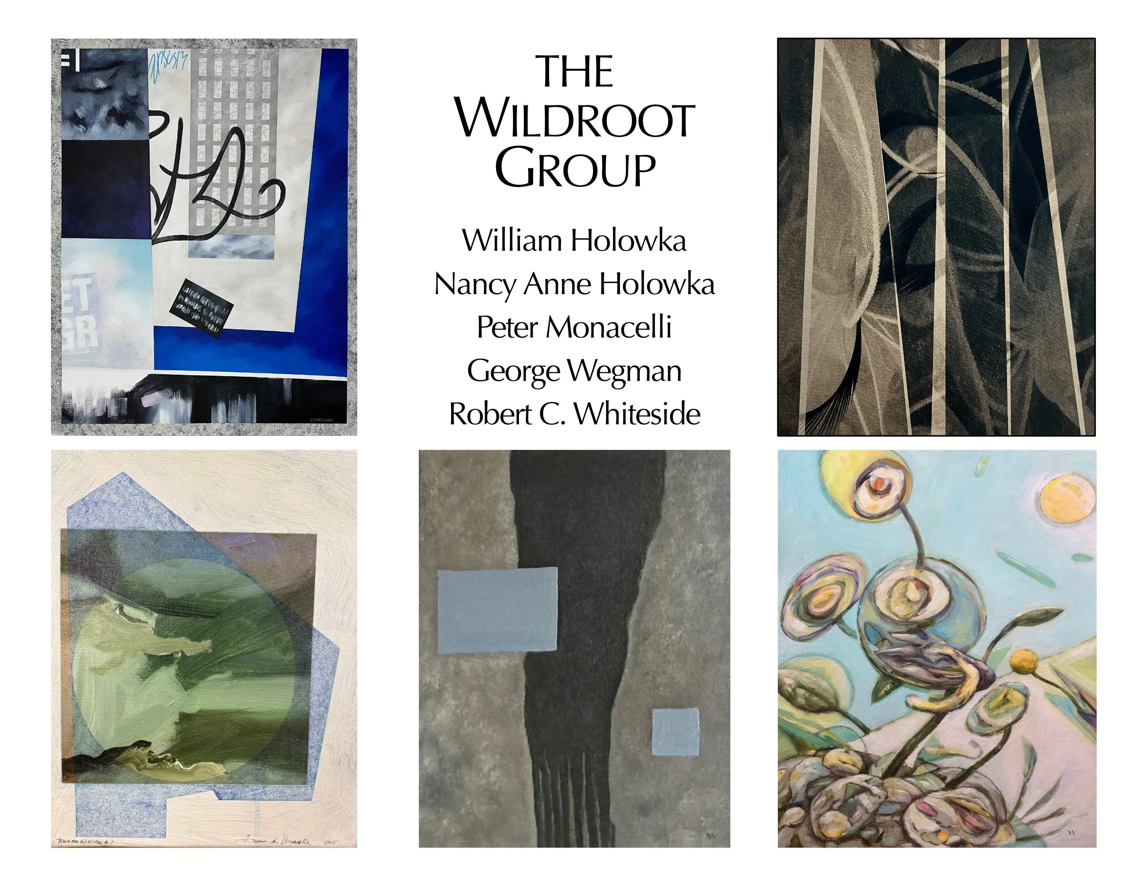 After the initial creation of the Gallery each of us has continued with our passion, producing new works to share our evolving vision and exhibiting our work both individually and as a group over the decades. The Wildroot years and the camaraderie we shared as artists and friends shaped our lives, our artistic visions and our knowledge. It is with great joy that we remember the past and embrace the future as we join together again to exhibit our work at The Dove Block Project in July 2026. The show will feature acrylic paintings by William Holowka, kallitype, cyanotype & archival pigment photography by Nancy Anne Holowka, mixed media work by Peter Monacelli, oil paintings & drawings by George Wegman and oil & gouache paintings by Robert C. Whiteside.
