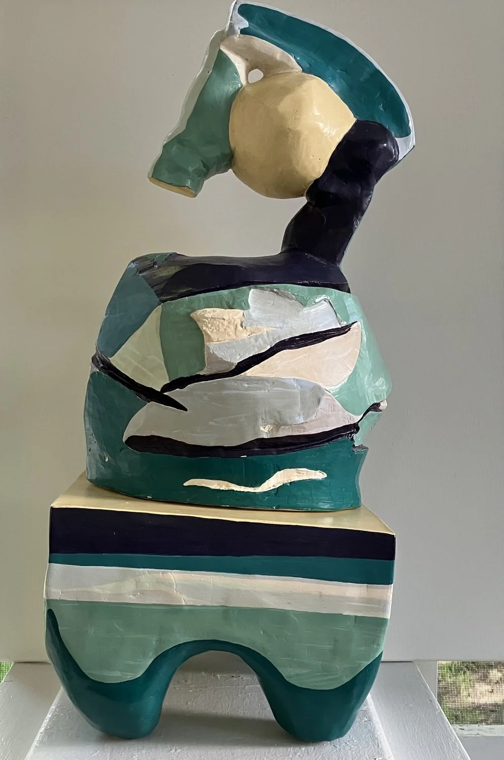 Cherry says, “This piece was made around 1989, in time for my first solo show at HWS Colleges. I had seen an exhibition of Arthur Dove at the Colleges in 1981, and this was an homage to his paintings of Seneca Lake. As in his paintings, all the forms are reflected in each other, the moon, the cow and the lake.”